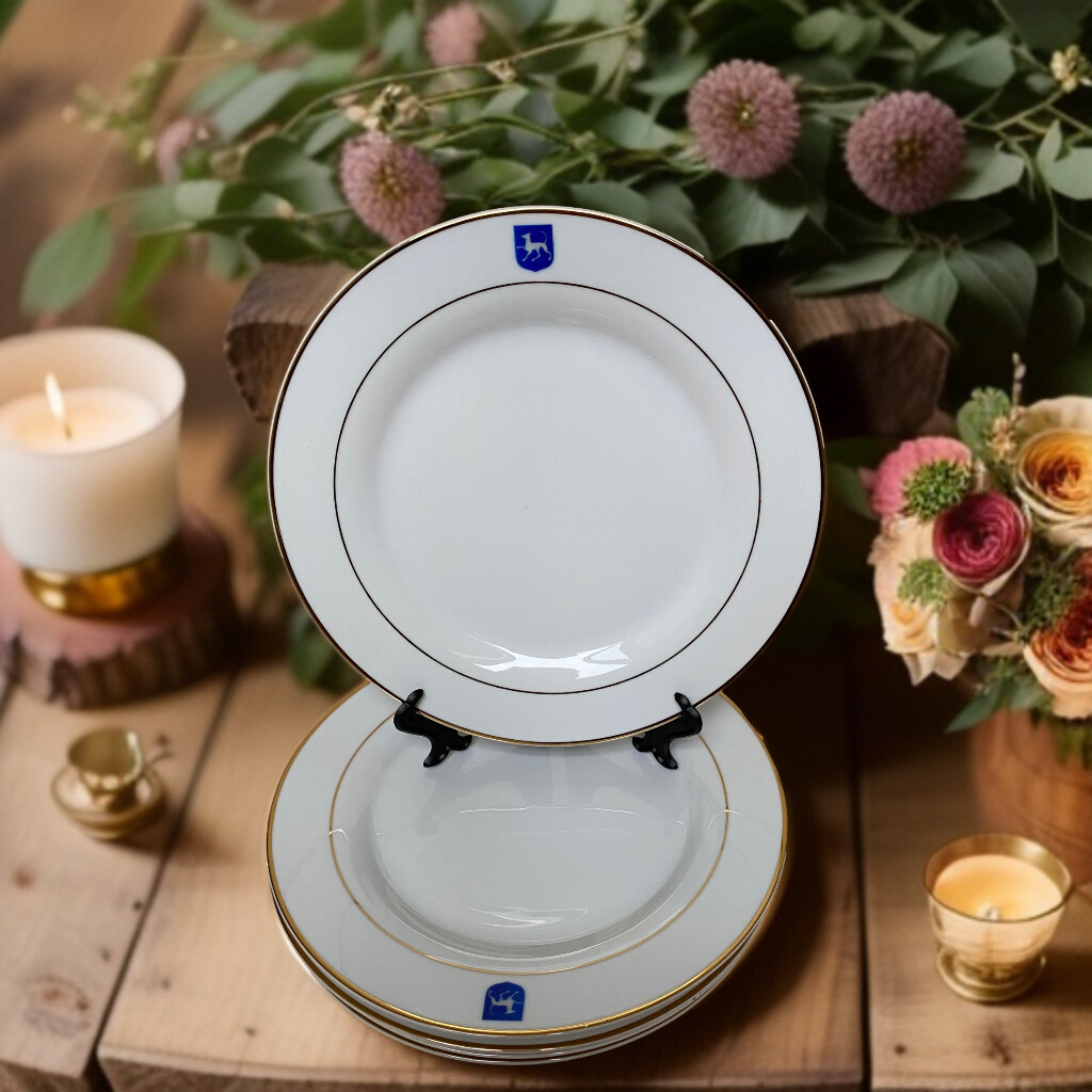 Assiette en porcelaine, double liseré doré, disponible au format de 20 cm de diamètre.